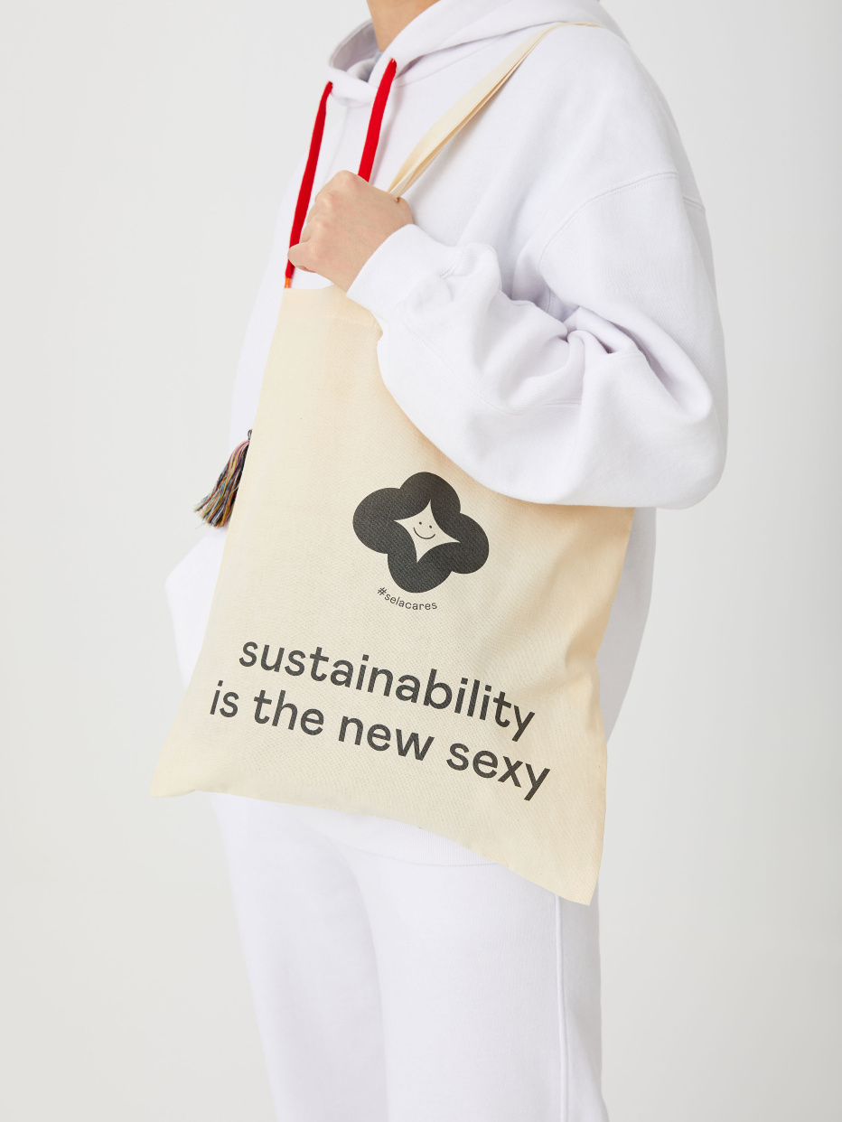 Также бренд с 2020 года активно популяризирует использование шоперов и добавляет в свой ассортимент многоразовые сумки с интересными принтами. За это время SELA произвела и реализовала около 100 тыс. шоперов.