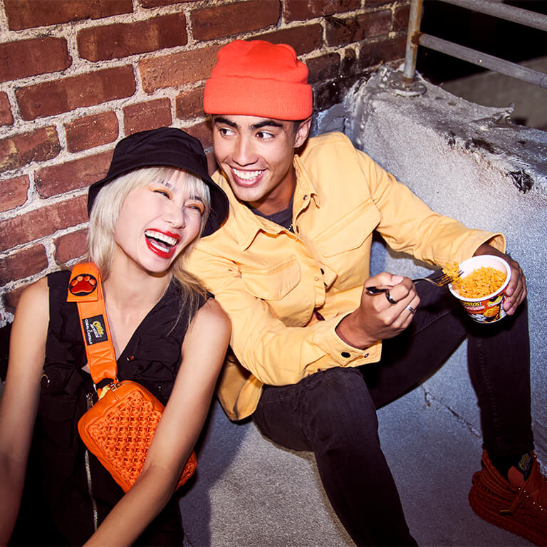 «В мире моды ты должен быть смелым и ломать правила, поэтому было довольно занятно работать с таким брендом, как Cheetos Mac ‘n Cheese, — рассказала дизайнер. — Вдохновением для меня стали смелые и яркие вкусы бренда, интерпретированные мной в стиле макраме. Это было весело и интересно, поскольку я первый раз работала с обувью».
