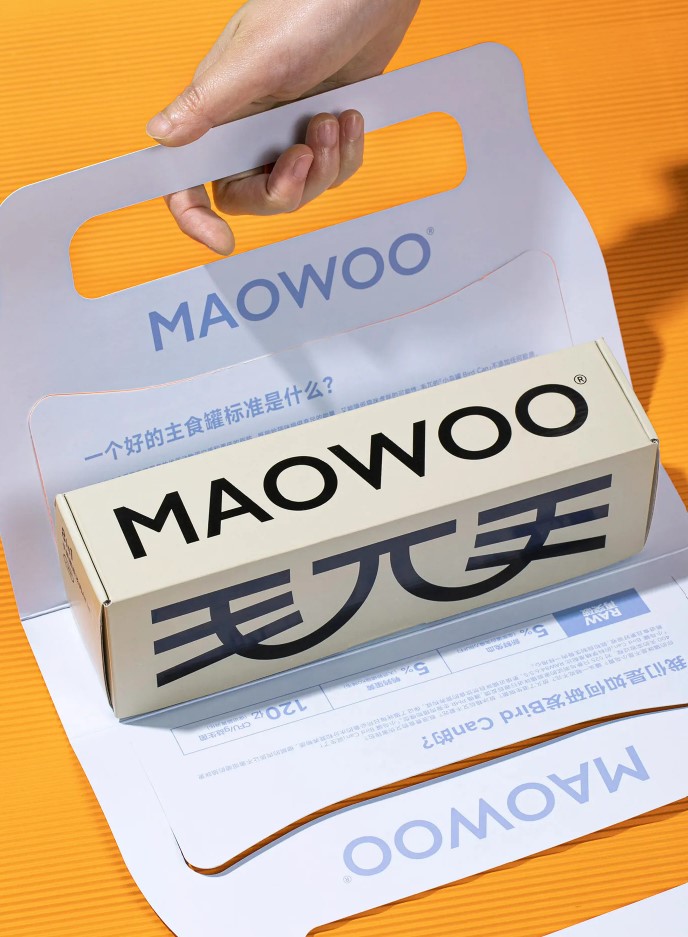 Самым ярким элементом дизайна стало оригинальное использование китайских иероглифов 毛兀, формирующих мордочку кота, в которой легко угадывается рот и усы. Такой креативный подход служит нескольким целям: создаёт явную связь с брендом MAOWOO и его целевой аудиторией — владельцами кошек, а также делает дизайн более очаровательным и интересным.