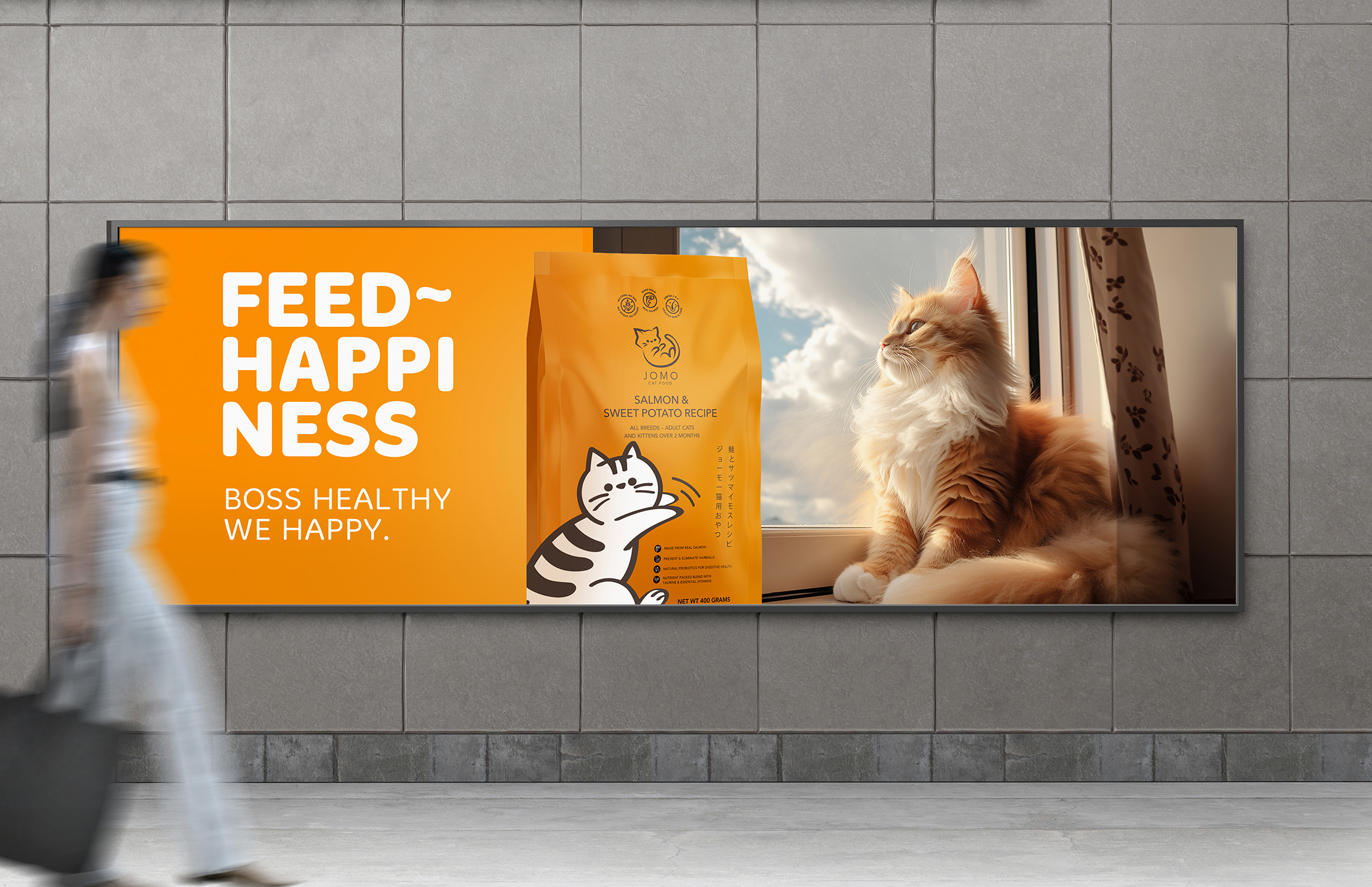 В студии помогли разработать брендинговую стратегию и дизайн упаковки для бренда, под которым до этого выпускались только корма и лакомства для собак. Дизайнеры решили, что бренд Jomo должен обладать уникальной айдентикой, которая выделит его среди других кормов для животных, представленных на рынке Таиланда.