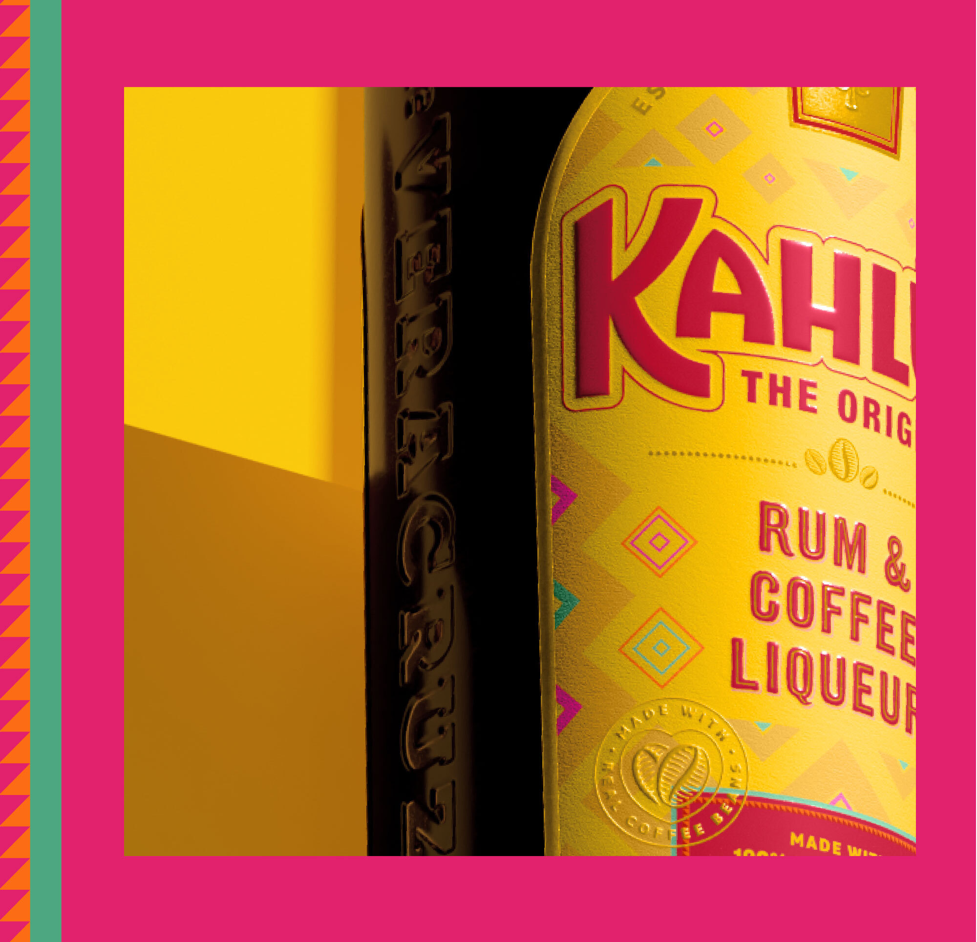 Специалистам Pearlfisher предстояло работать с тремя важнейшими компонентами: мексиканским наследием бренда, ощущением игривости и, конечно, кофе. Этикетка была переработана, сохранив фирменную жёлтую арку. Однако фон был заменён геометрическими формами, вдохновлёнными Мексикой. Изменились также логотип и шрифт Kahlua, пишет Upakovano.ru.