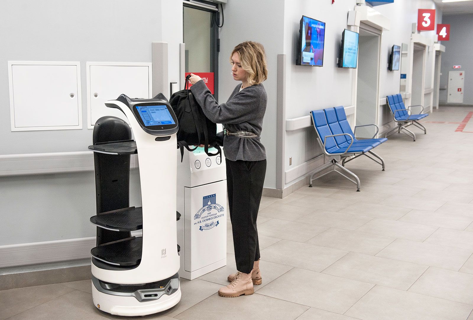 Во флагманском центре Научно-исследовательского института скорой помощи имени Н.В. Склифосовского робокошка базируется на первом этаже в зоне триажа. Она помогает отвозить вещи больных и посетителей в смотровую. Для этого у робота есть умные индукционные лотки, которые позволяют ему понять, что сумка поставлена или снята.