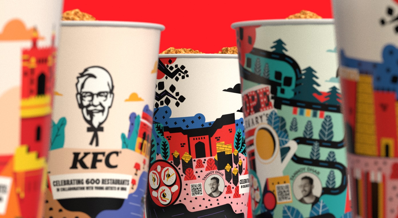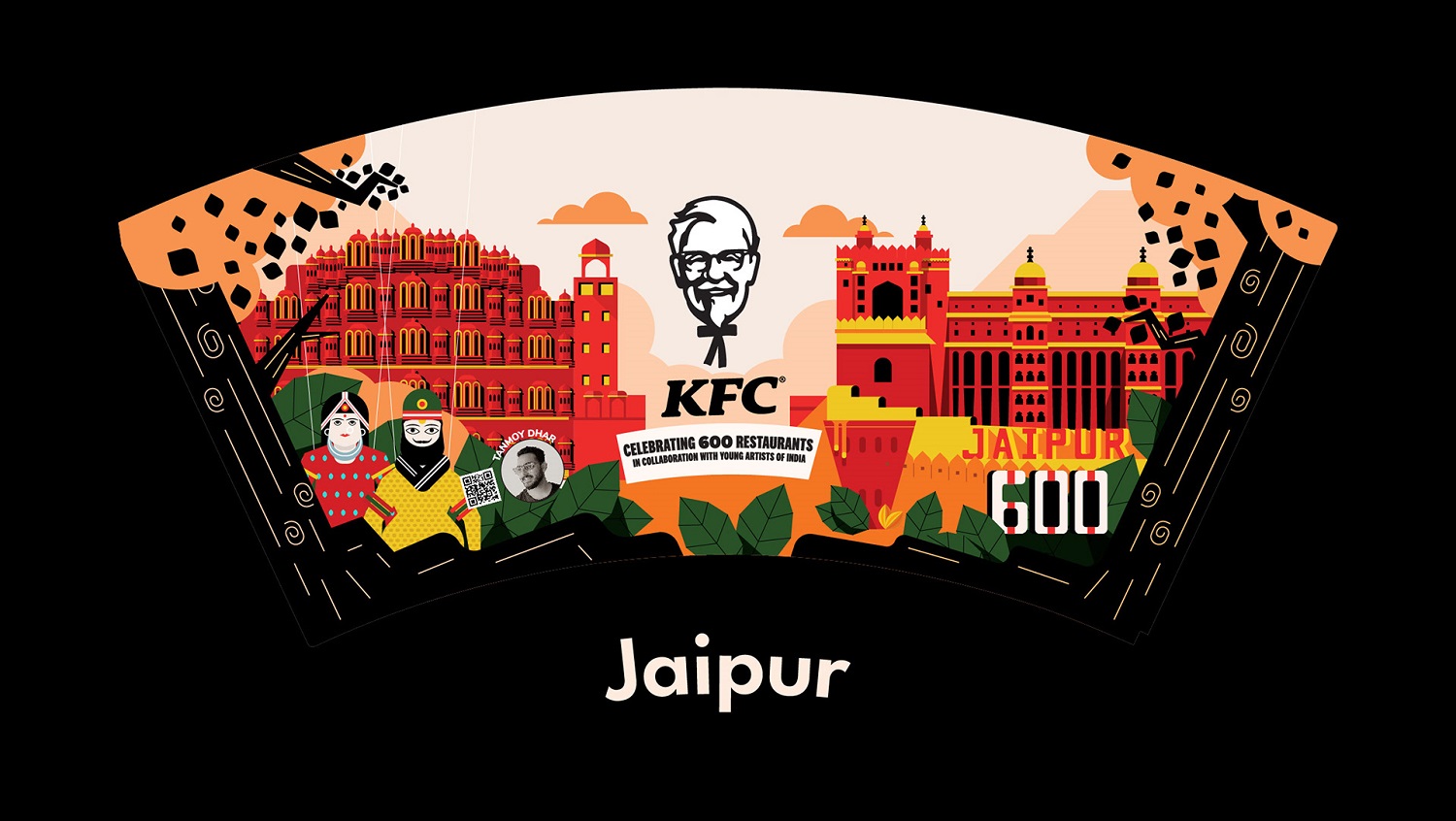 Сеть ресторанов KFC обратилась в индийскую студию дизайна Colico с задачей разработать специальный дизайн упаковки для «куриных» баскетов. Необходимо было креативное решение, которое превратит привычные ведерки в самобытные полотна, отражающие суть индийских городов Джайпур, Дарджилинг, Каттак и Куч-Бихар. Издание приурочено к очередному достижению KFC — открытию шестисотого заведения в Индии.