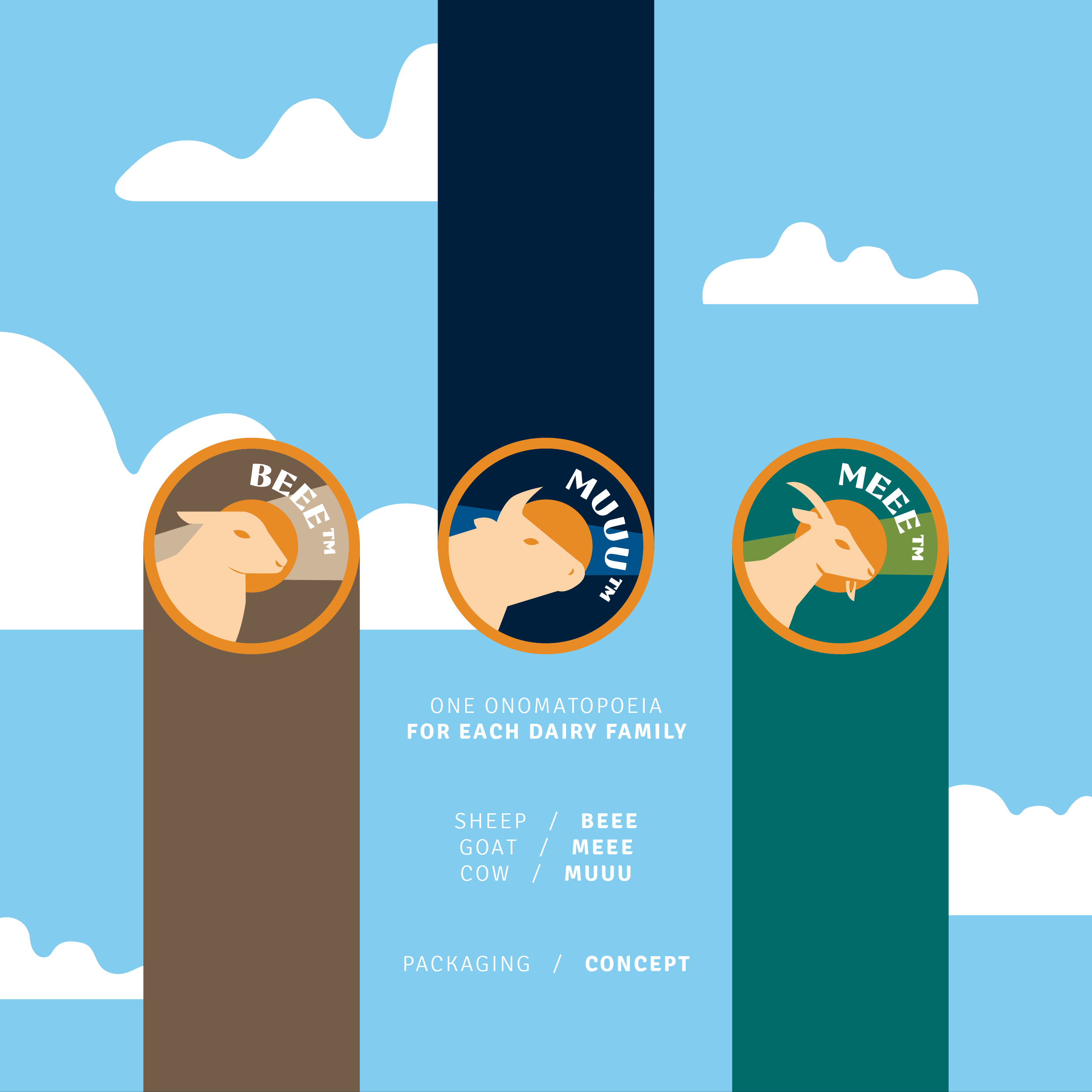На упаковке также появились игривые звукоподражательные названия, такие как MUUU, BEEE и MEEE, говорящие о конкретных животных. Стратегическое сочетание современной графики и ностальгических деталей гарантирует заметность продукта на прилавке.