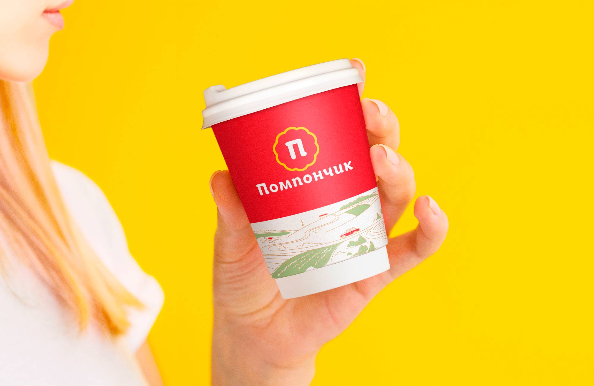 Частью нового фирменного стиля торговой марки стала также серия упаковок, используемых в сети кафе «Помпончик». Новый логотип разместился на них по соседству с иллюстрацией, призванной подчеркнуть и донести до потребителя суть и ценности бренда.
