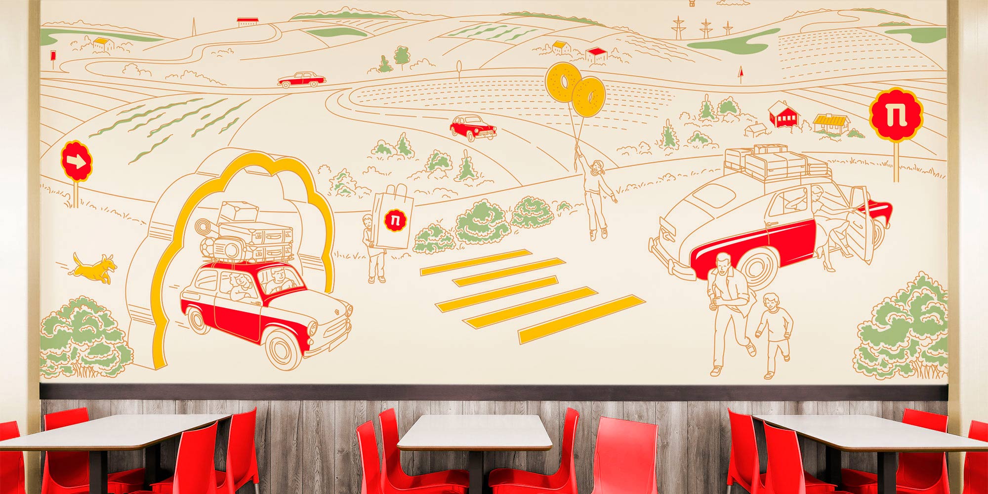 Новый стиль бренда «Помпончик» нашел свое продолжение и в облике интерьеров и экстерьеров множества кафе по всей России.