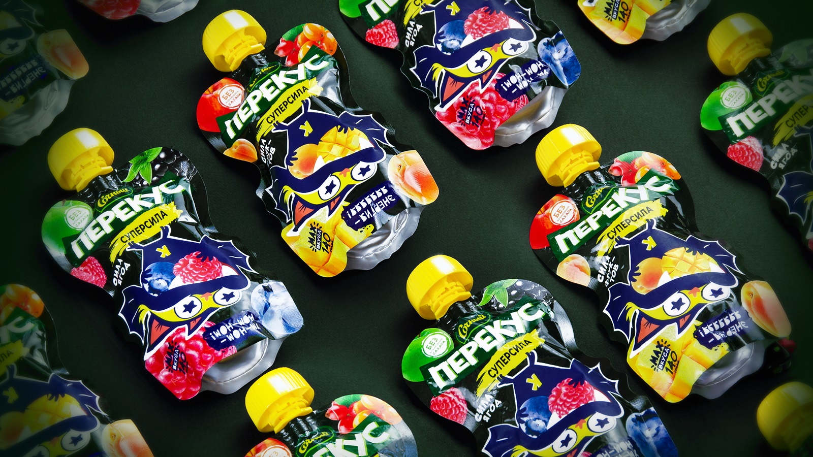 «Сочный Перекус» — фруктовый десерт без сахара для детей дошкольного и школьного возраста из 100% натуральных ингредиентов. В AVC разработан дизайн упаковки для новой функциональной саб-линейки бренда — «Суперсила». Линейка представлена фруктовым и ягодным вкусами — персик-манго и черника-малина.
