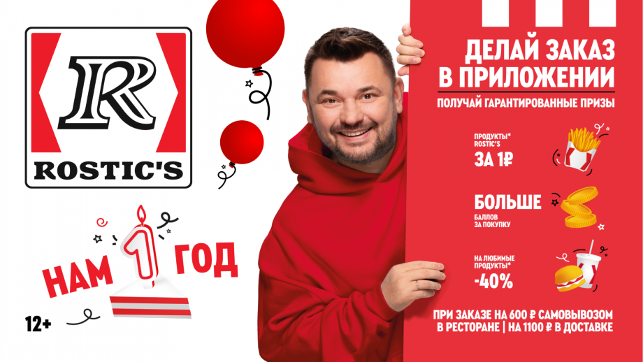 Сеть ресторанов быстрого питания Rostic’s в честь первой годовщины после ребрендинга из KFC запустила большую коммуникационную 360-кампанию. Главным героем в ней стал музыкант, шоумен и лидер поп-группы «Руки Вверх» Сергей Жуков.