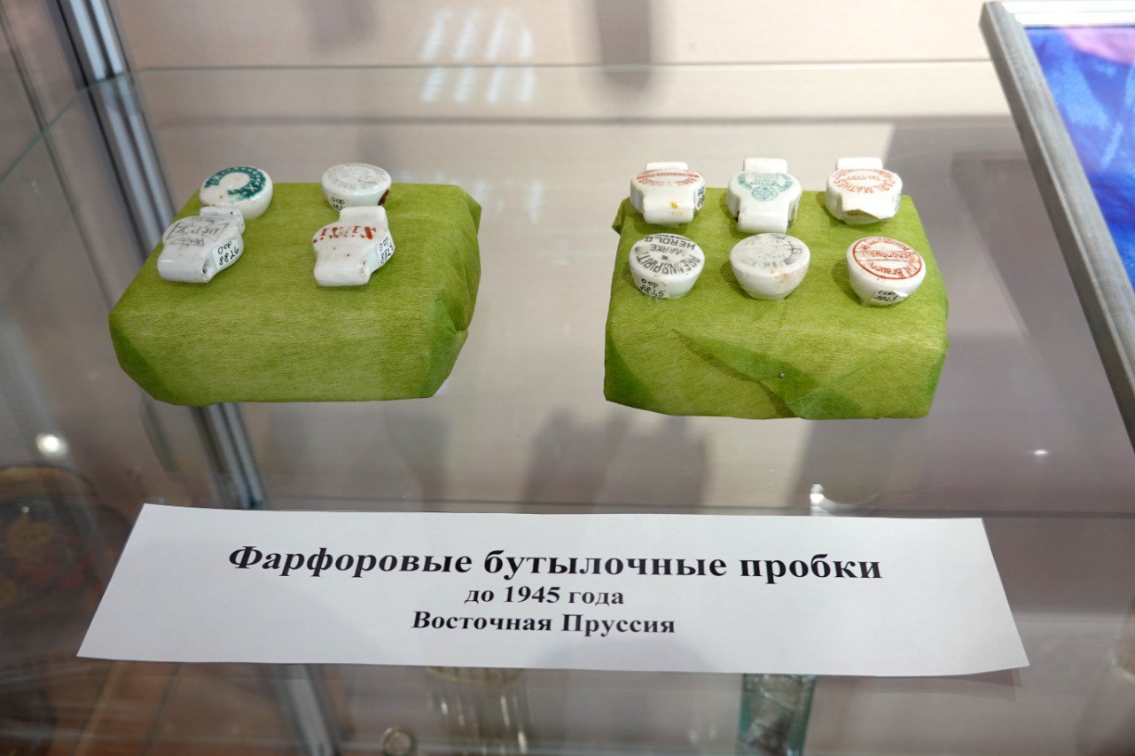 В неё вошли бутылки из-под минеральной воды, бутылочное клеймо и керамические бугельные пробки XIX–XX веков, а также флакон для рижского бальзама.