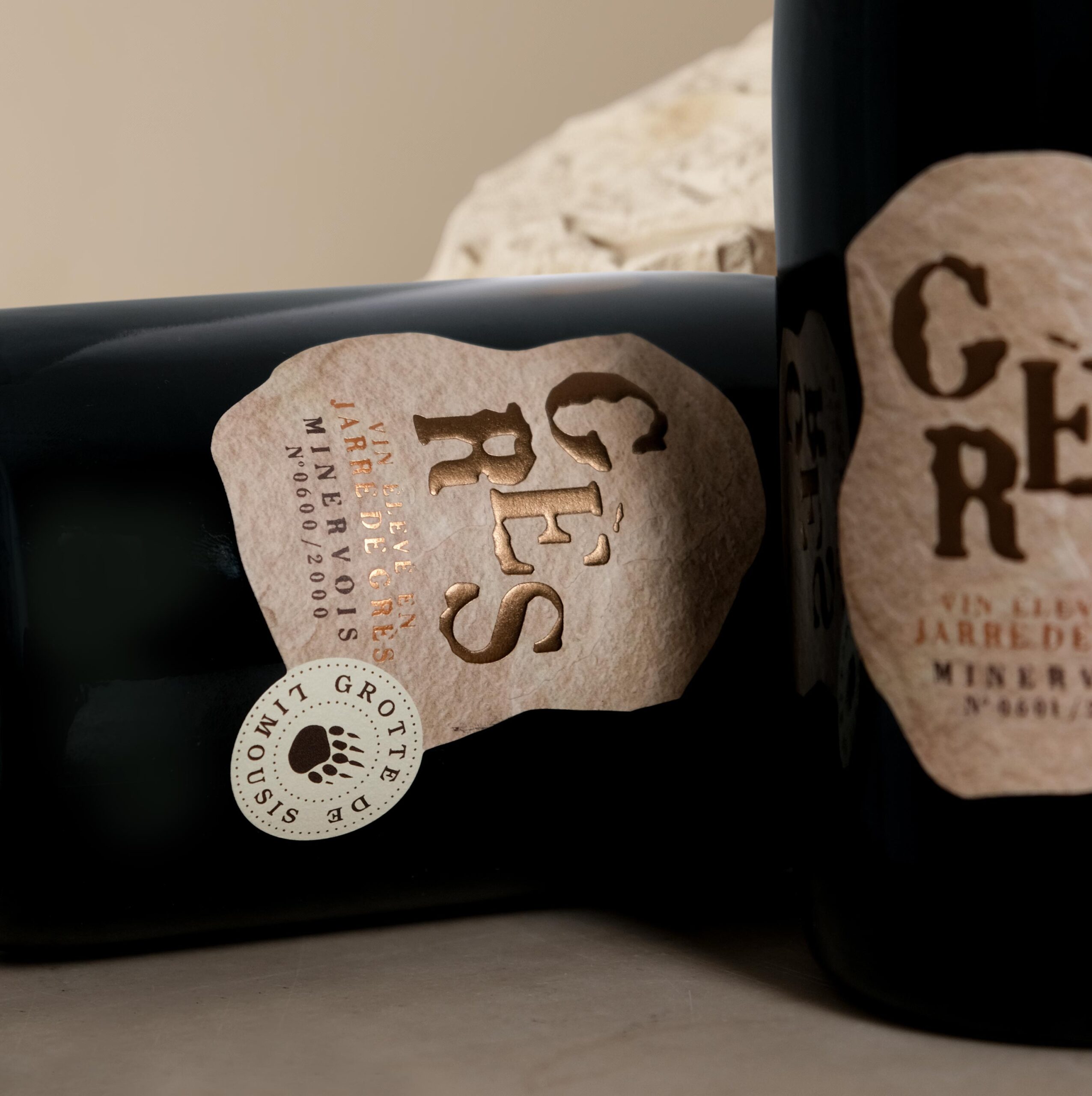 Компания Lauran Cabaret обратилась в агентство с просьбой оформить вино, выдержанное в течение года в глиняных сосудах в сердце пещеры Limousis. Вино Grès получило своё название благодаря песчаникам, на которых выращиваются виноградные лозы.