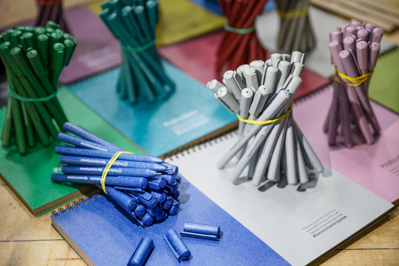 «Вместо того чтобы выбросить старые предметы, их лучше сдать в раздельный сбор, тогда часть отходов снова вернется в экономику, а не отправится на свалку. Такой подход — тенденция будущего. Сырье нам поставляют организаторы городских и федеральных экологических проектов, а мы занимаемся производством из него канцелярских и бытовых товаров», — рассказывает Юлия Кузьмина, сооснователь проекта.