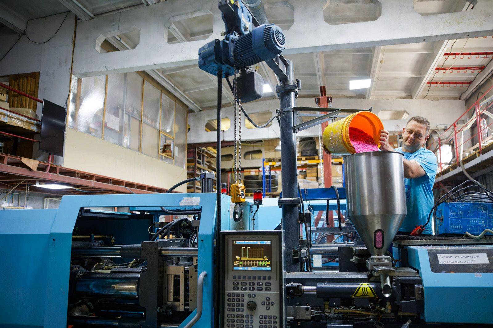 На предприятии установлены специальные станки — термопластавтоматы, работающие по принципу литья под давлением. После предварительной подготовки сырья (например, измельчения, если это не гранулы) такие станки способны переработать даже сложные виды пластика. В качестве сырья подходят однородные отходы: пластиковые стаканчики и пакеты из-под жидкостей. За вид конечного изделия отвечает пресс-форма, которую вешают на станок, — на выходе получают ручки, зажимы или другие товары, по своим качествам не уступающие изделиям из первичного сырья. Только из тетрапака они очень красивые — тонкий слой алюминия в составе такой упаковки после переработки превращается в мерцающие блестки.