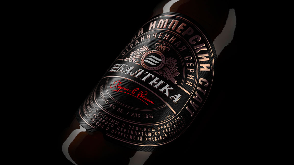Пивоваренная компания «Балтика» начала продажи «Русского имперского стаута», новой лимитированной серии темного пива. Дизайн линейки был разработан брендинговым агентством DDVB, в соответствии с продуктовой концепцией. В основу легла идея того, что новый сорт сварен в России и при этом имеет богатый исторический бэкграунд.