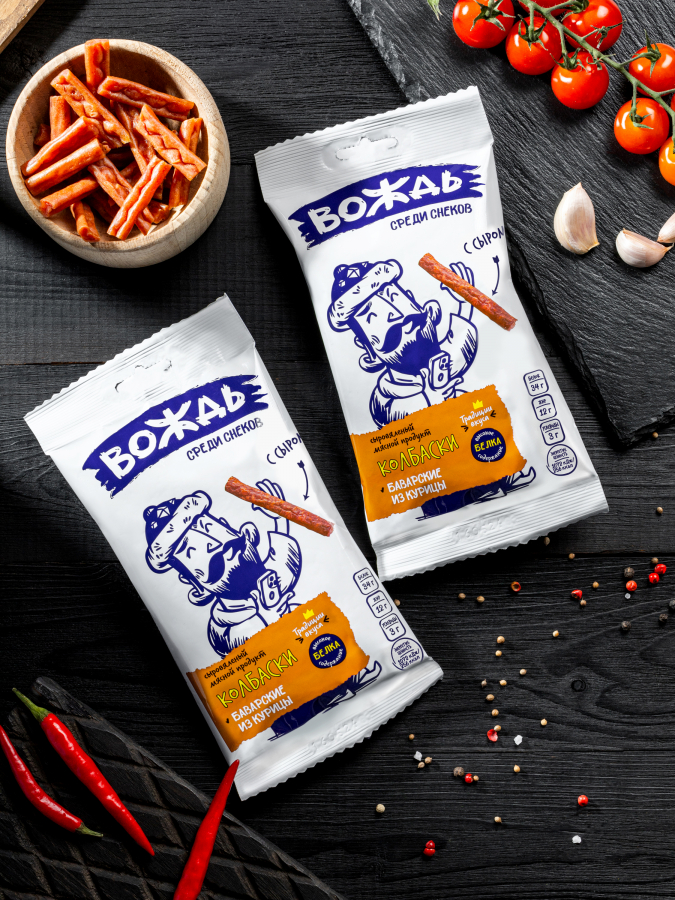 Общее настроение упаковки — гедонистический стиль, помогающий создать положительную ассоциацию с продуктом. Он призван подчёркивать то, что мясные снэки — это не просто еда, а источник наслаждения и удовольствия.