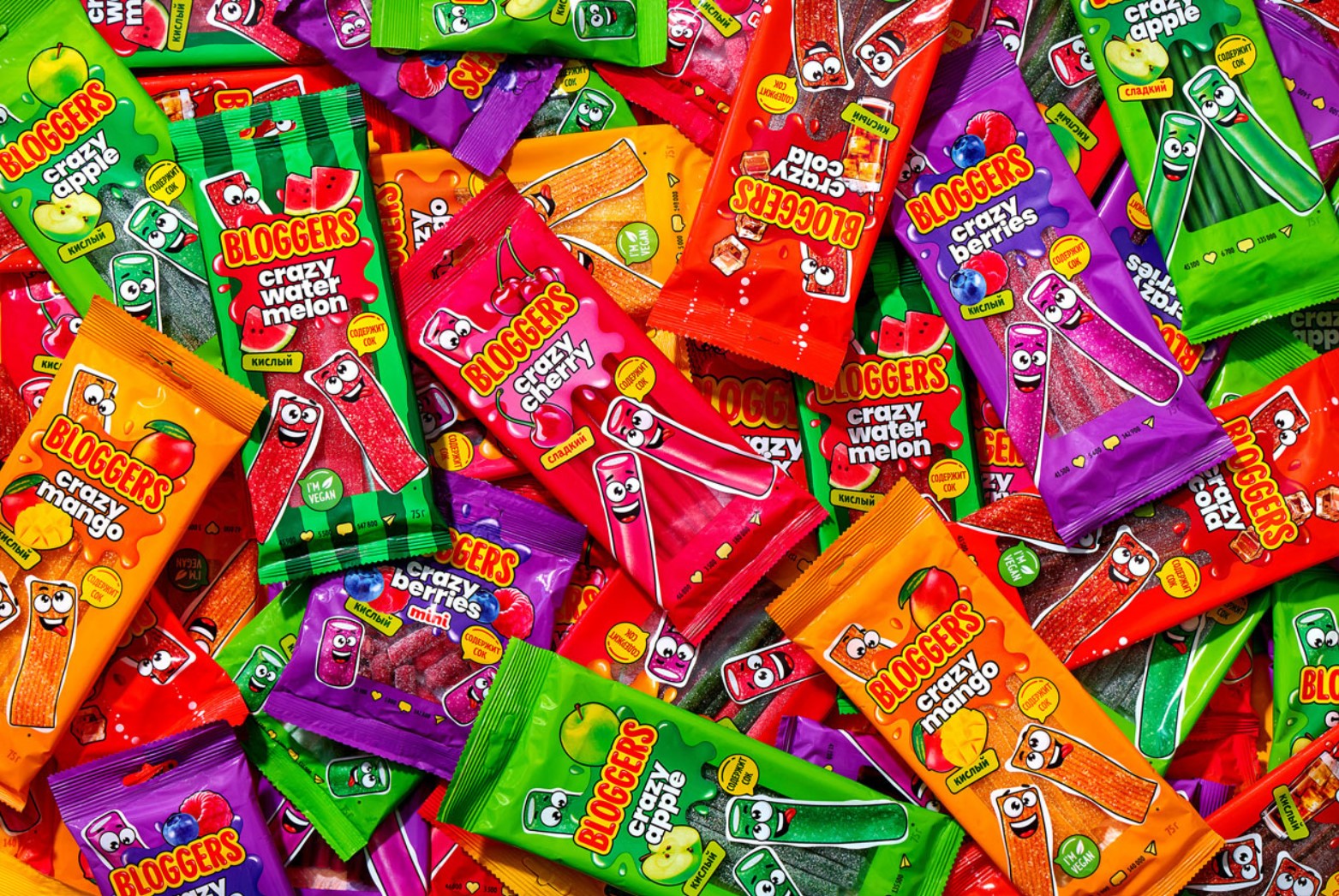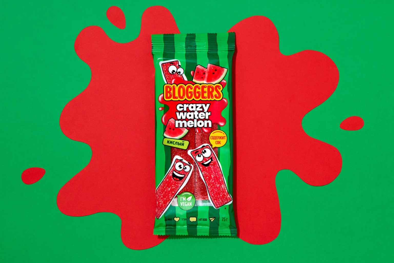Вербальная айдентика уже сформировала mind map, от которой отталкивались дизайнеры, работавшие над оформлением упаковки. Атрибутами визуального образа мармелада Bloggers стал объемный, «сочный» шрифт логотипа и богатая, яркая палитра. А также озорные и веселые персонажи-мармеладки, формирующие эмоциональную связь с потребителями.