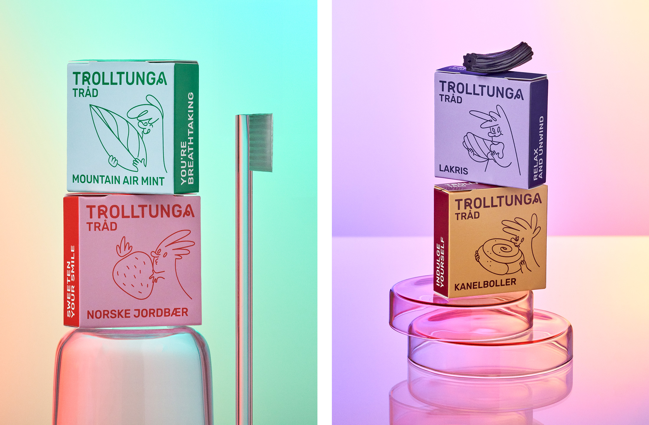 Вдохновением для упаковки зубной нити TrollTunga стали легенды о троллях, которые являются неотъемлемой частью норвежской культуры. Название бренда также напоминает о знаменитой рок-группе из земли фьордов —Troll’s Tongue.