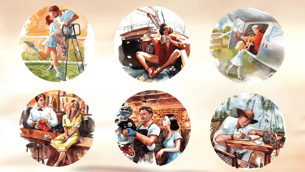 Главным героем стал мистер Браун, собирательный образ человека, разделяющего страсть к кофе и путешествиям. Мы видим его в разные периоды жизни, в разных ситуациях и будто бы глазами разных людей. Образы не случайны и находят отражение в характере блендов. Так, первая влюбленность символизирует мягкий сливочно-шоколадный вкус кофе с легкими ягодными нотками, зрелый возраст — более крепкий, насыщенный купаж с благородной кислинкой.