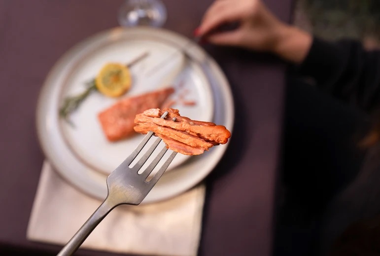 Технология Revo Foods объединяет два материала: жир и белок, в новые сложные формы, позволяющие создавать необычные текстуры, а также «сочные и нежные» структуры, идеально подходящие для печати растительных филе и стейков.