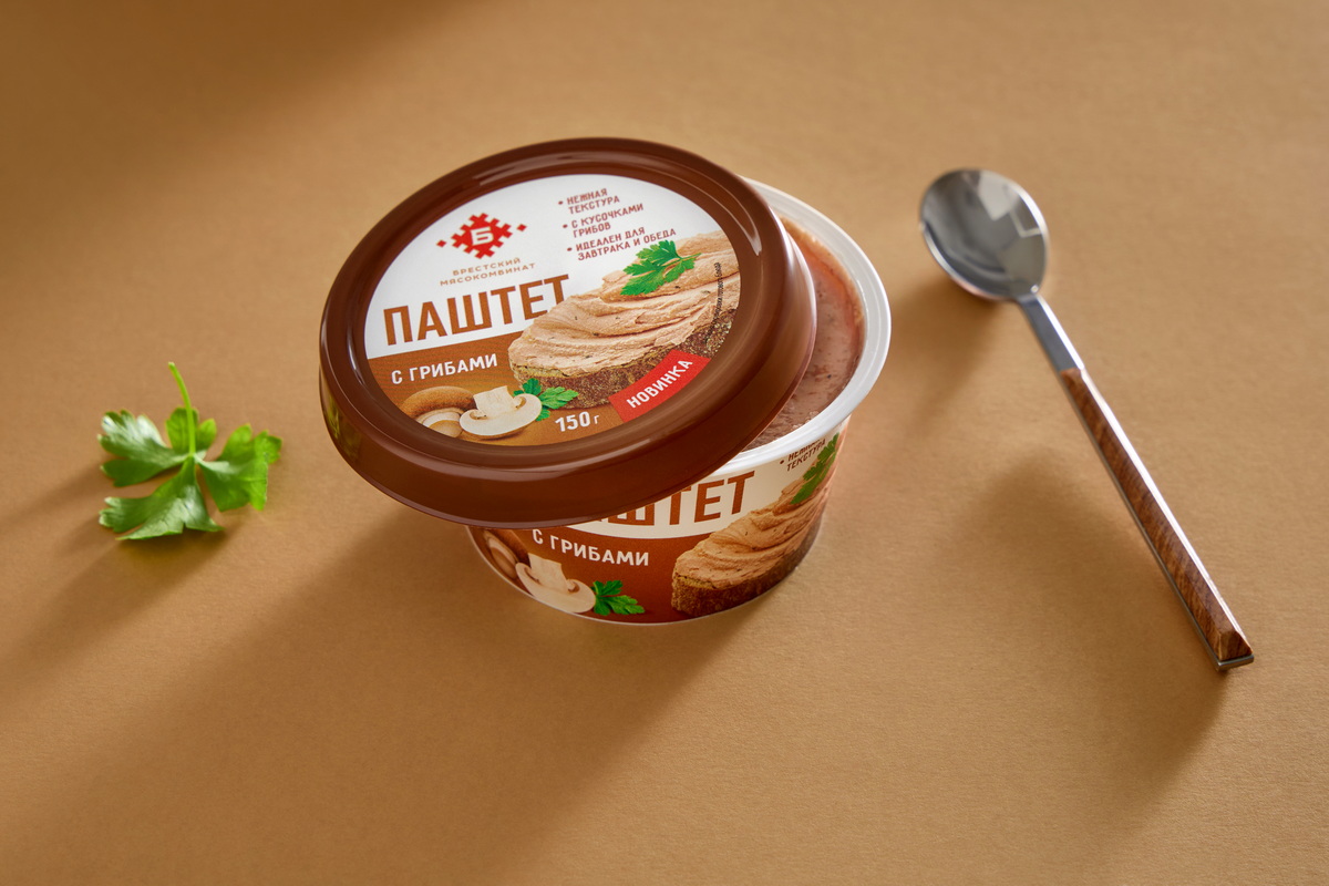 Брестский мясокомбинат запускал новую линейку паштетов. Следовало разработать дизайн упаковки, который указал бы на принадлежность бренду и отстроил от конкурентов на полке.