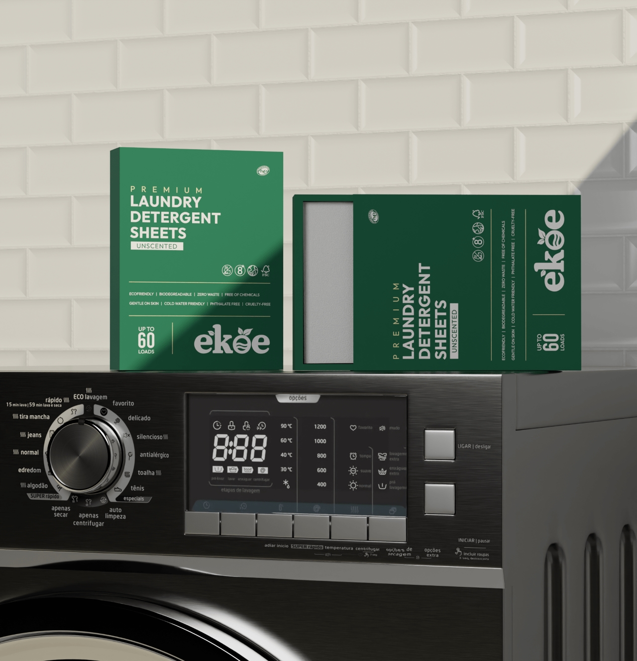 Для салфеток для стирки EKOE в агентстве разработали современную и стильную упаковку, которая соотносится с экологичным видением бренда. Клиенту нужен был свежий и чёткий дизайн, который отражал бы простоту и эффективность серии средств для стирки.