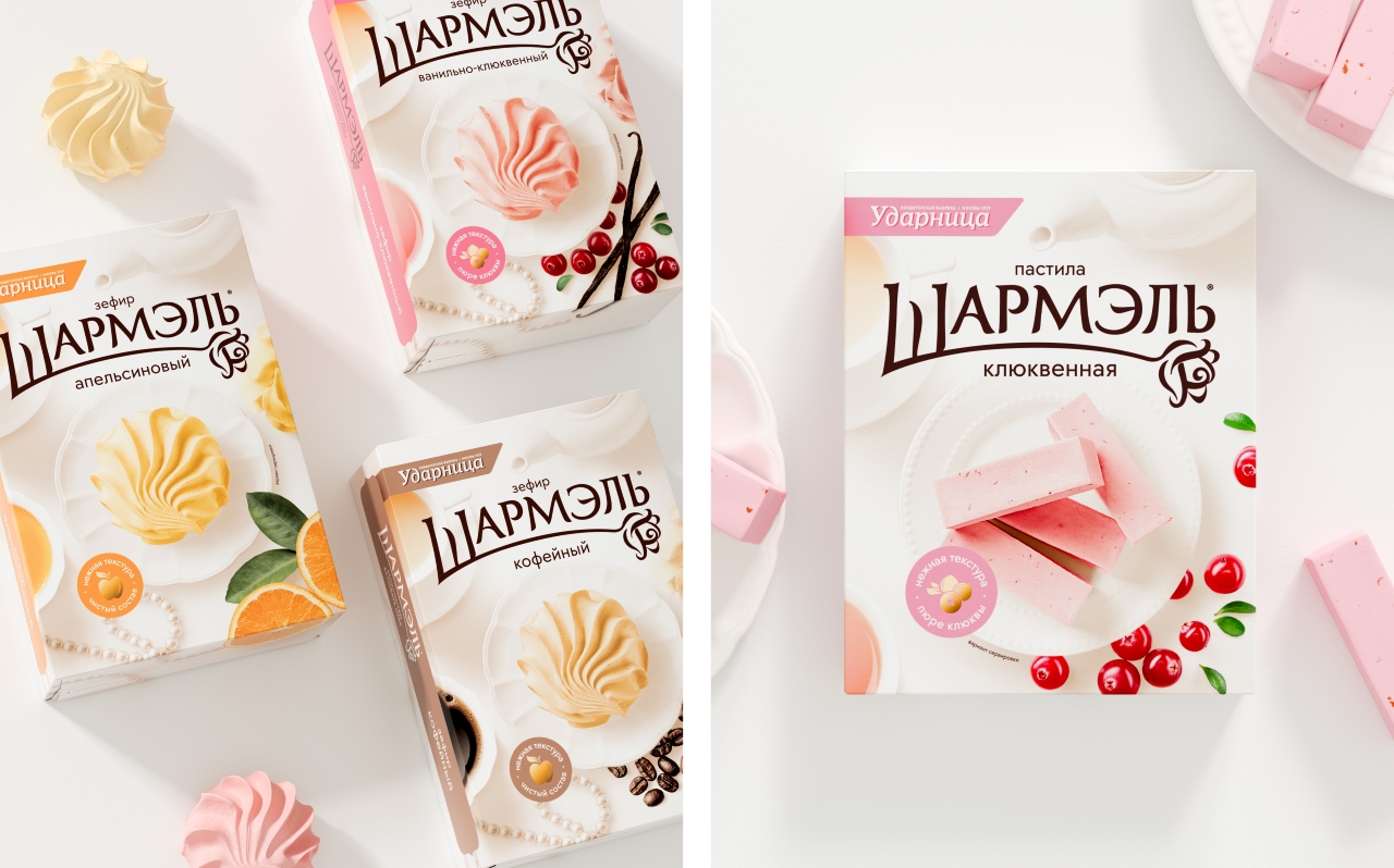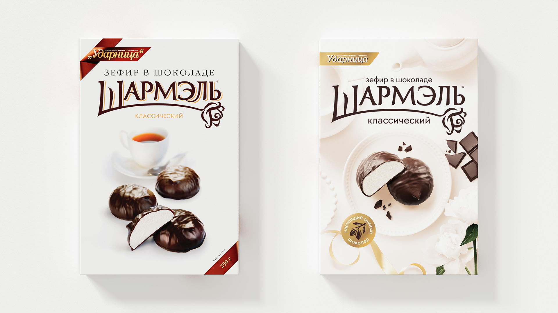 «Шармэль» — бренд с мощным бэкграундом и серьезным весом в своей категории. Он долго оставался неизменным, из-за этого со временем стал ассоциироваться с советской классикой. Бренду было необходимо бережное обновление, без утраты его уникальной истории. Поэтому редизайн упаковки стал логичным решением, к которому мы пришли в процессе пересмотра платформы бренда», — рассказывает Марина Смольская-Терехина, бренд-менеджер АО «Ударница».