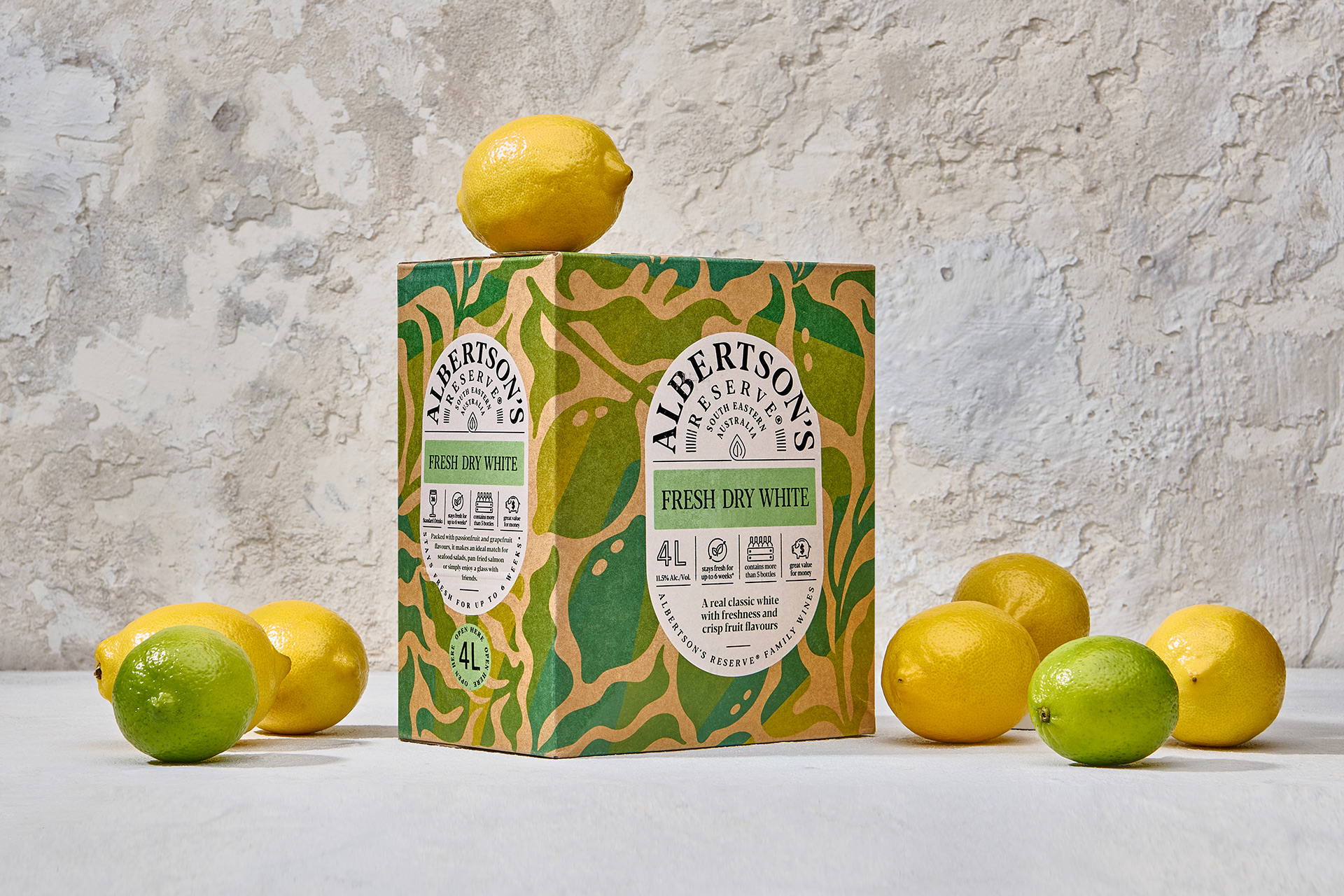 Компания Albertson’s Reserve предлагает линейку вин, разлитых в 4-литровые коробки. Вино получено в южно-восточной части Австралии. Оно отличается доступностью и приятным вкусом для повседневного употребления. В линейке представлено легкое фруктовое вино, свежее сухое белое вино и мягкое сухое красное вино.