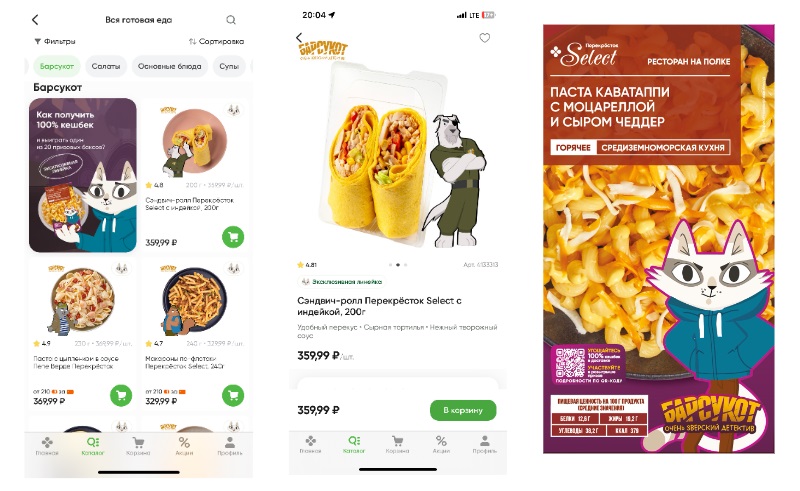 Торговая сеть «Перекрёсток» совместно с «Кинопоиском» выпустила линейку готовой еды под брендом Select, созданную по мотивам детективного мультсериала «Барсукот. Очень зверский детектив».