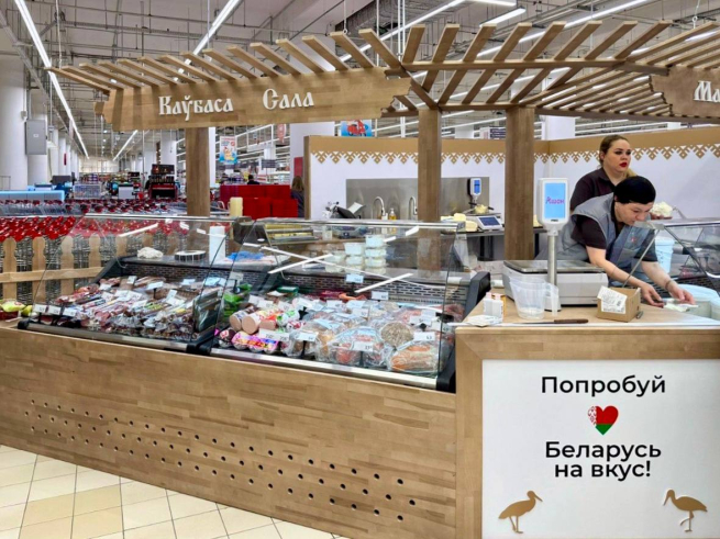 Всего здесь представлено более 200 SKU различных категорий товаров: молочные продукты, сыры и десерты от Минского молочного завода № 1, мясные деликатесы и колбасы, изделия из льна и др.