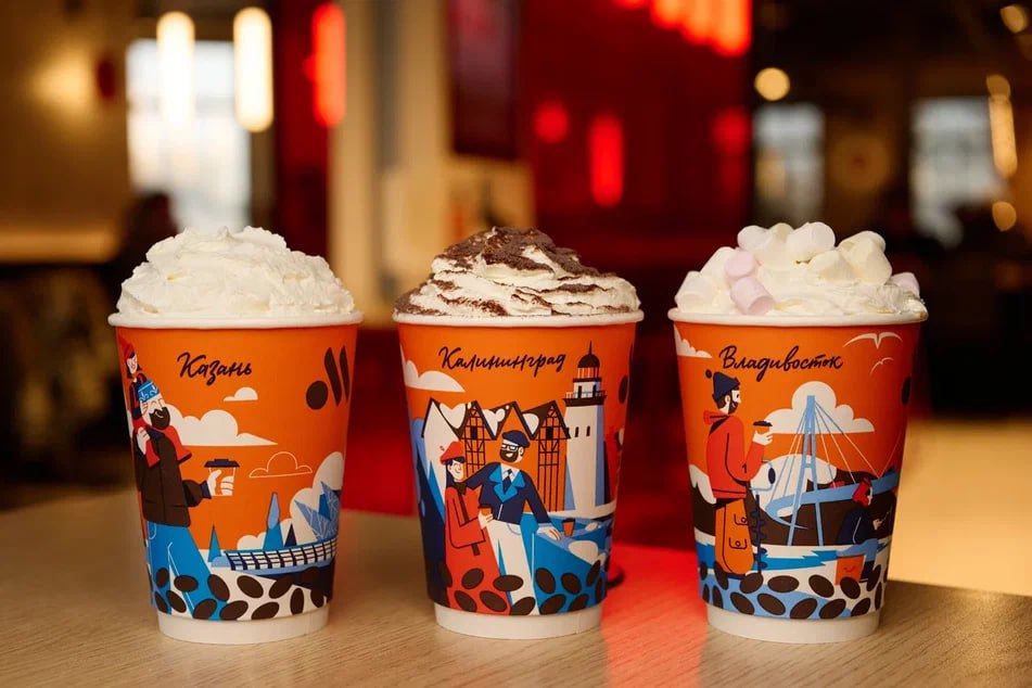 В ресторанах «Вкусно — и точка» горячие напитки начали разливать в стаканчики с изображением зданий, которые ассоциируются с современной Москвой. В стилизованную композицию вошли башни Москва-Сити и «золотая арка» жилого комплекса «ЗИЛАрт», расположенного на набережной Марка Шагала.