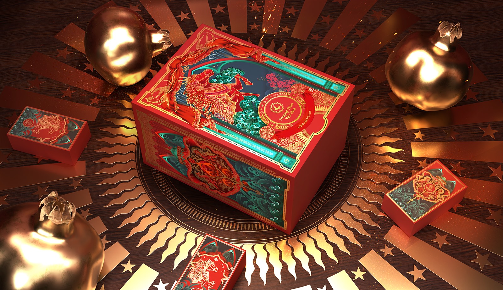 Коробка чая воплощает в себе переосмысленный образ Алого Жеребца — прославленного, стремительно мчащегося по волнам, парящего над цветами и устремлённого к великолепному дворцу. Этот символ силы, власти и ослепительного триумфа пронизывает каждую деталь, выполненную с высочайшей точностью, пишет Upakovano.ru. Он несёт пожелание процветания, изобилия и вдохновляющего начала нового года. Это не просто праздничная упаковка чая — это произведение искусства, ода весне и гимн победителям.