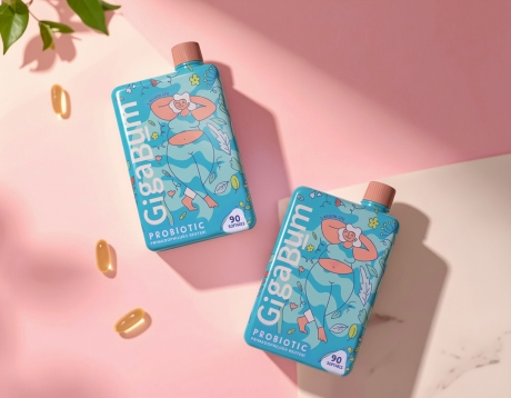 Название Gigabum представляет собой комбинацию слов Giga и Bum, что отражает ироничную уверенность бренда. А нежная палитра голубого, розового и желтовато-зелёного выделяет продукт на фоне стерильных белых упаковок, традиционных для фармацевтического сектора, пишет Upakovano.ru. Gigabum не стесняется говорить о пищеварении. Он делает это с самоиронией и улыбкой, ведь забота о здоровье может быть не только полезной, но и весёлой.