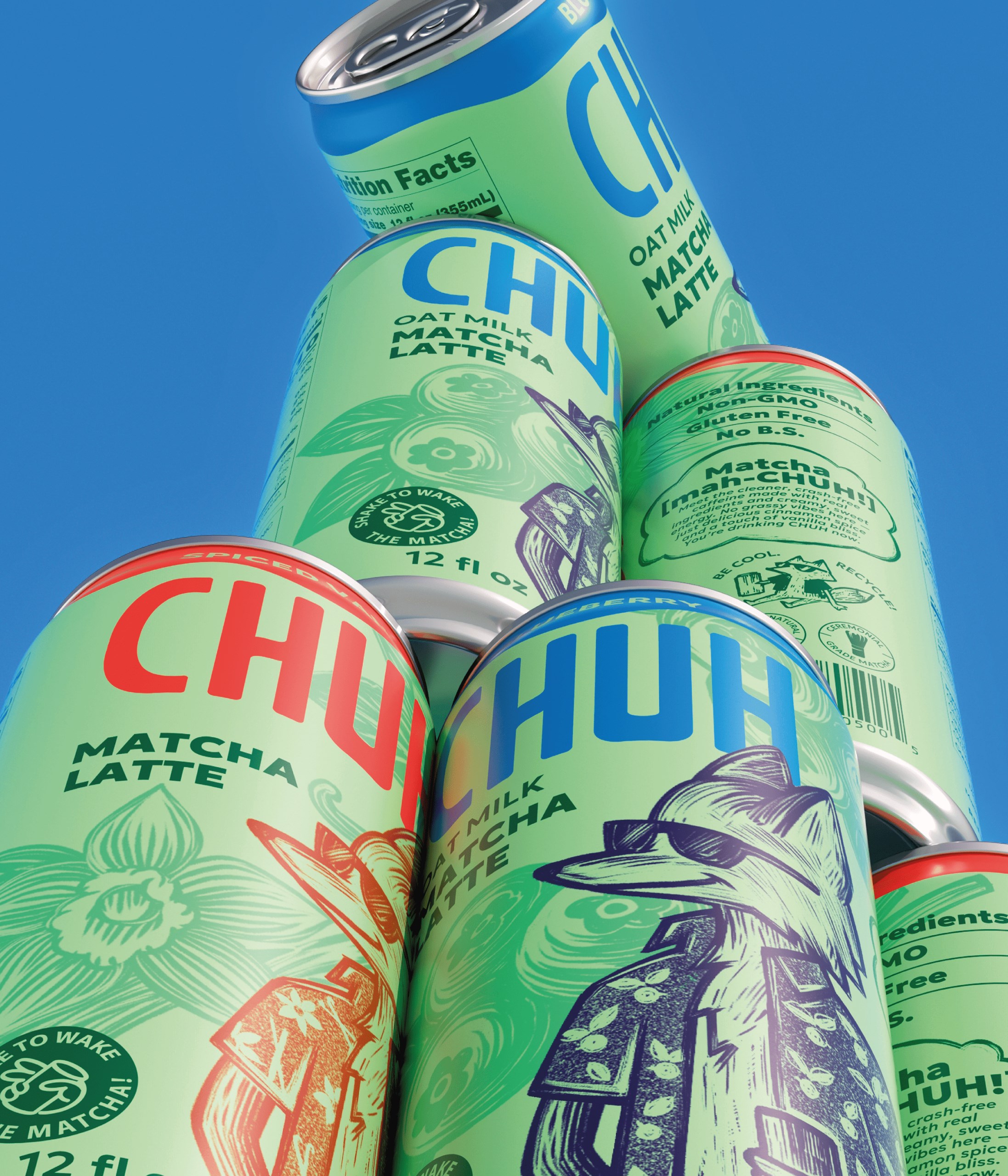 CHUH — это напиток на основе матчи с различными вкусами, занимающий уникальную нишу между газированными безалкогольными напитками и холодным готовыми к употреблению кофейными напитками. Название CHUH отсылает к основному ингредиенту, обыгрывая фонетическое сходство слов matcha и chug («пить залпом»).