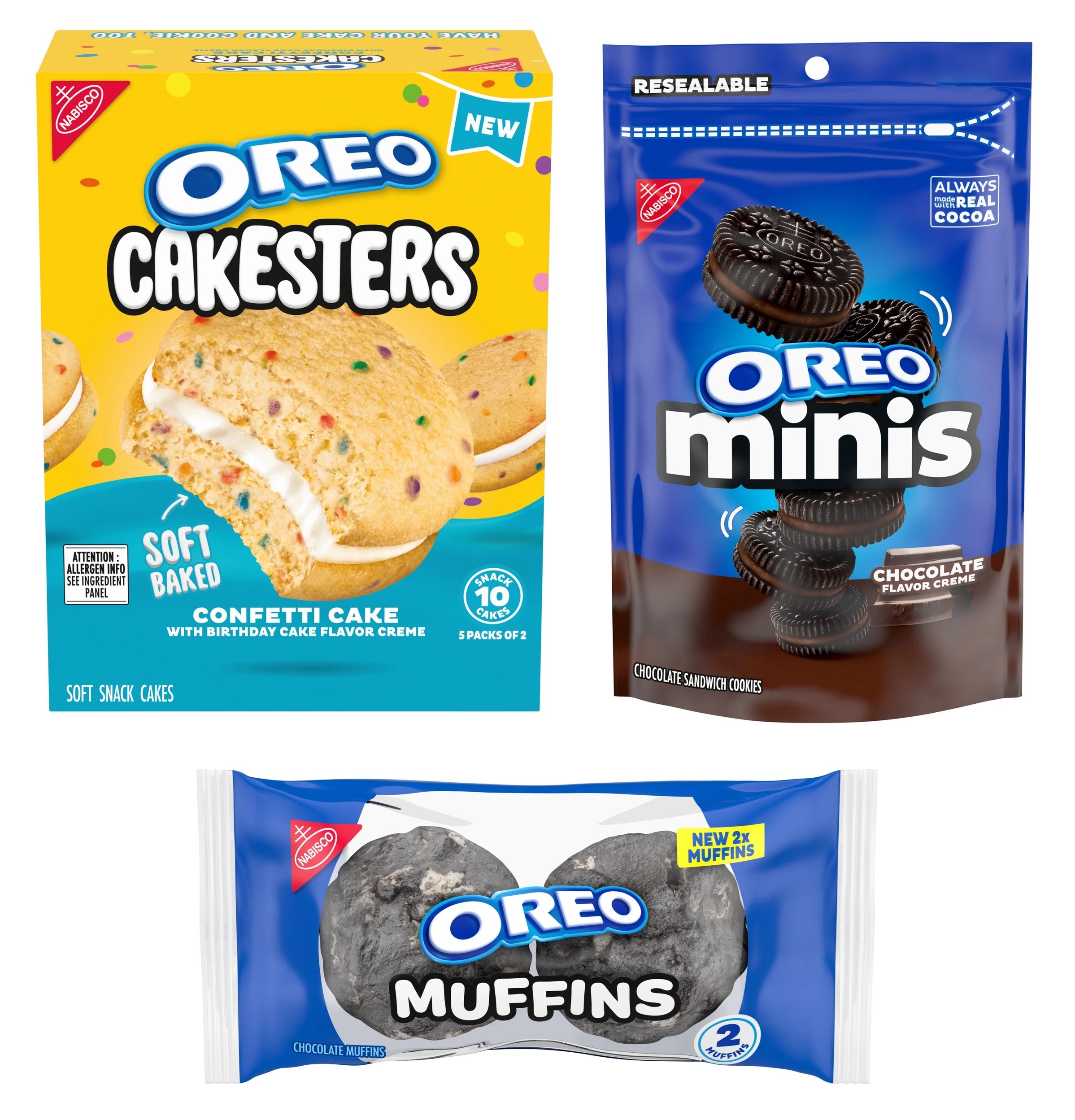 В декабре 2025 года компания также представила сезонные новинки: Oreo Muffins, Oreo Cakesters Confetti Cake, Oreo Thins Chocolate Ganache и Oreo Minis Chocolate Creme. Дополнительно в январе 2026 года бренд расширит линейку, выпустив новые форматы упаковки Golden Oreo Minis и Oreo Minis Peanut Butter.