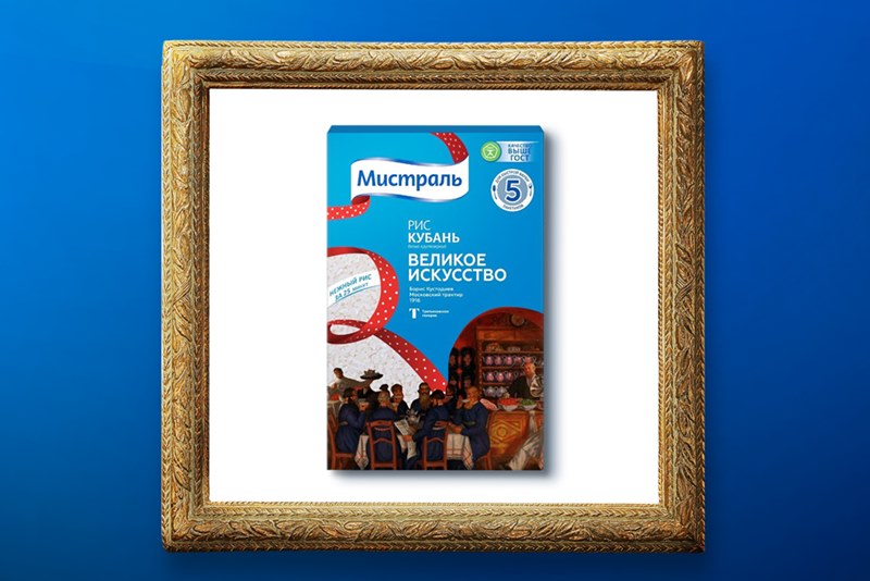 Группа компаний «Мистраль» решила продолжить свою летнюю коллаборацию с Государственной Третьяковской галереей. На упаковках круп появились картины Кандинского, Малевича, Кустодиева. Например, «На сенокосе» и «Композиция VII». Это уже вторая волна коллаборации.