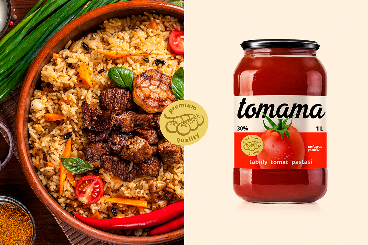 Главный продукт — натуральная томатная паста, сохраняющая вкус самостоятельно выращенных узбекских помидоров благодаря технологиям бережной обработки. Позже в линейку добавилось яблочное повидло — и появилась необходимость создать гибкую, современную, масштабируемую систему бренда.