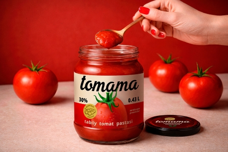 Нейм Tomama — это фантазийное соединение слов «томат» и «мама». Он одновременно передает суть продукта и несет в себе ассоциации с заботой, теплом и традицией. «Мама» в названии усиливает доверие, указывает на естественность и домашний вкус, формирует близкий, человечный образ бренда.