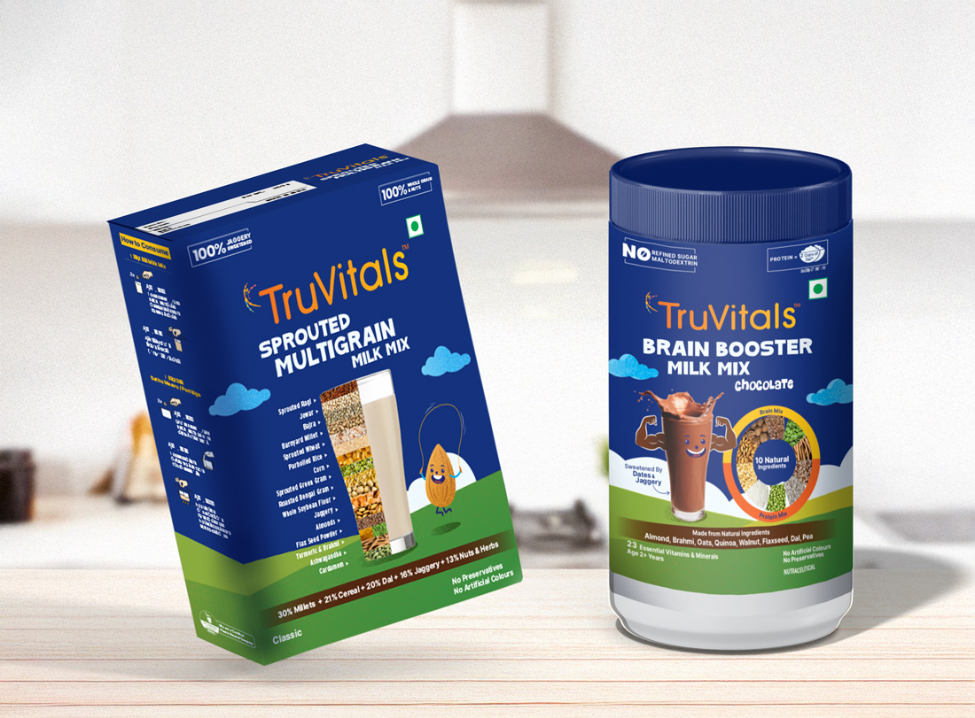 TruVitals — бренд детского питания, основанный мамами из престижной индийской бизнес-школы IIM. Бренд решил обновить имидж и переработать упаковку, чтобы усилить позиции в онлайн-пространстве. Известный продуктами без маиды (пшеничной муки), сахара и вредных химикатов, TruVitals нуждался в современной, надежной идентичности, которая выделялась бы на цифровых платформах и привлекала бы родителей, заботящихся о здоровье.