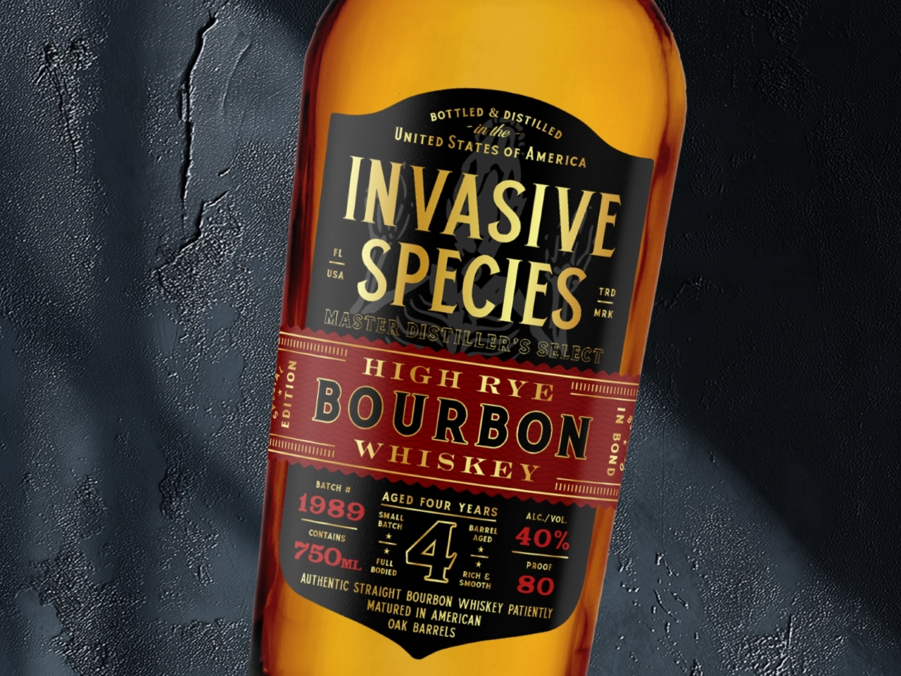 Премиальный проект упаковки разработан для бренда бурбона с высоким содержанием ржи Invasive Species, уверенно занимающего место на современном американском рынке спиртных напитков. Главной целью стало создание этикетки, которая передает смелость, утонченность и безусловную премиальность, подчеркивая мастерство и наследие.