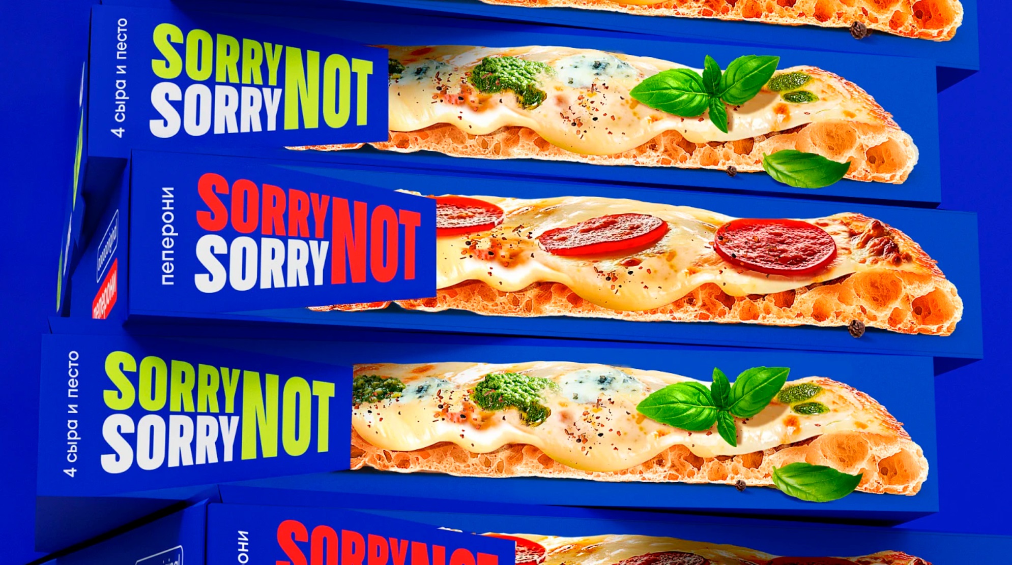 Специалисты агентства выбрали концепцию, основанную на разрешении себе быть такими как захочется, без ограничений и рамок. Название бренда Sorry Not Sorry отражает главную идею — это вкусная еда, которую можно есть без угрызений совести, когда, где, сколько и с кем угодно.