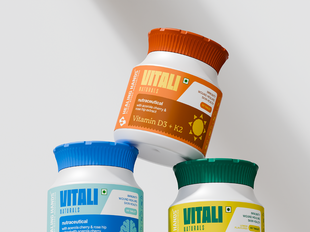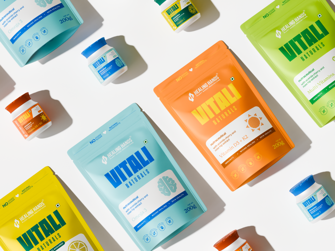 Vitali Naturals представляет современную концепцию упаковки нутрицевтиков, разработанную так, чтобы обеспечить максимальное присутствие на прилавке благодаря прозрачности, дифференциации по цвету и системному брендингу. Линейка включает в себя витамин C, Омегу-3, витамины D3 + K2 и мультивитамины, упакованные в устойчивые пакеты и флаконы.
